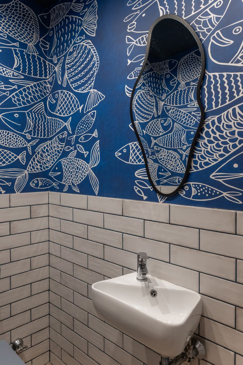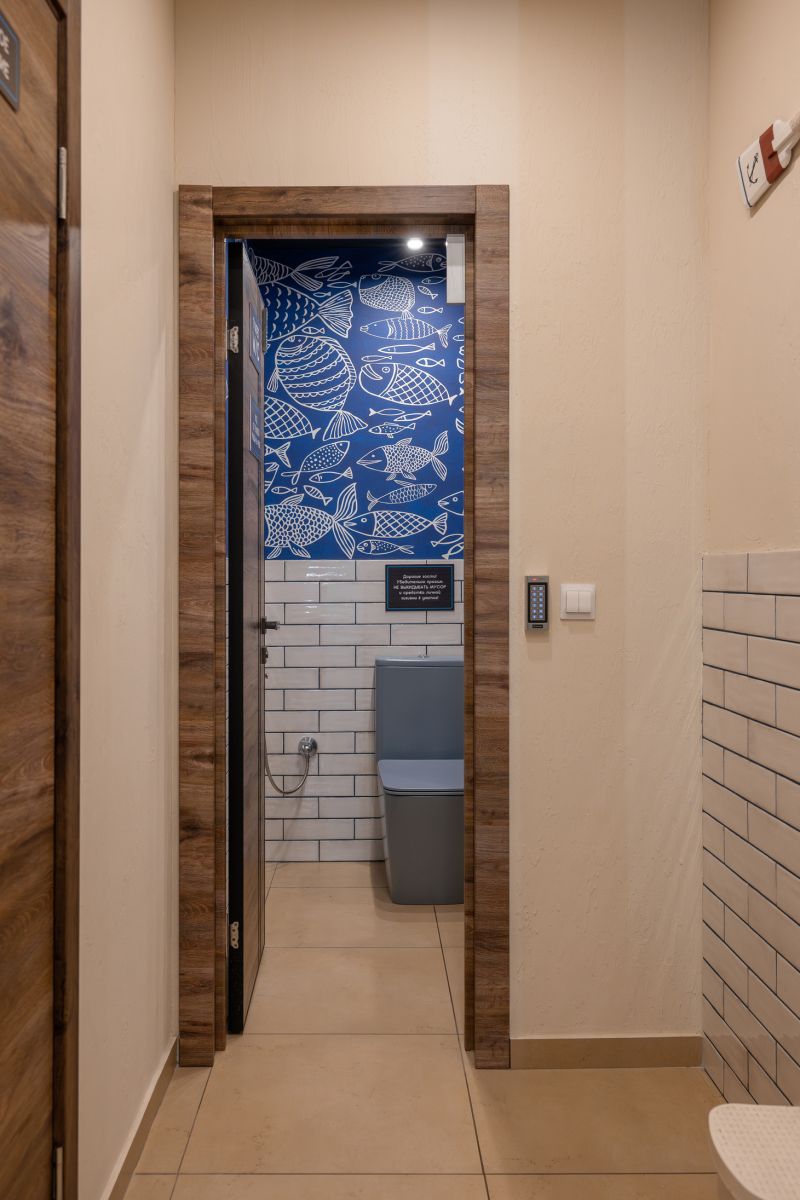 Вам не нужно быть дизайнером, чтобы понять, что детали имеют значение, и именно в них кроется магия атмосферы. Это и произошло в санузле одного саратовского ресторана. Вместо скучных стен здесь теперь царит подводное царство, созданное бесшовными обоями ECO с изображением рыб от ОРТОГРАФ. Сделав санузел таким ярким, наши клиенты показали, что даже самые обычные пространства могут преобразиться и стать настоящими хайлайтами заведения. Это демонстрация силы дизайна, способного подарить посетителям новые, яркие эмоции.
