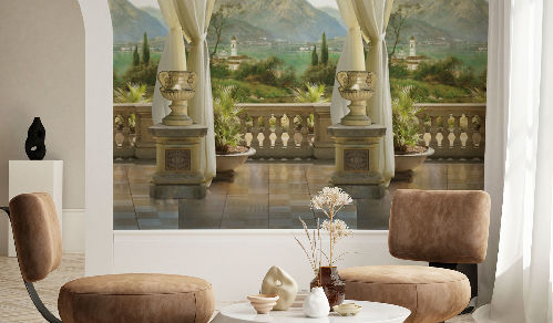 Если Вам не повезло с видом из окна, или же его просто нет, то у компании ОРТОГРАФ есть для Вас отличное решение. Коллекция изображений «Обманки» - своеобразный пространственный портал. Разместив фреску или фотообои с таким изображением на стене, Вы перенесётесь на террасы старинных замков, бальных залов, балконы с видом на лазурное море. С фресками и фотообоями от компании ОРТОГРАФ у Вас есть возможность оказаться в любом уголке мира. Вместо обыкновенной стены перед вами откроется красивейшая пространственная перспектива,  которая создаст иллюзию нахождения в другом городе, стране, континенте и времени. К тому же, изображения в таком стиле визуально увеличивают пространство помещения.