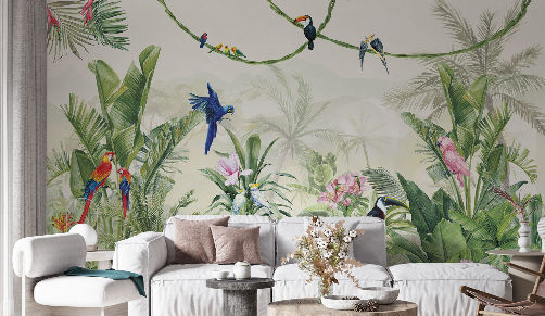 Это джунгли, прочувствуйте их настроение! В новой коллекции вы найдёте панорамные тропические сюжеты, поражающие своей глубокой «живой» перспективой, тщательной прорисовкой и цветовой гармонией. Каждый сюжет – это возможность стать ближе к дикой природе: почувствовать освежающую прохладу тенистых зарослей или палящий полуденный зной, встречать рассветы и закаты в компании изящных фламинго, игривых попугаев и обитателей дикой фауны.