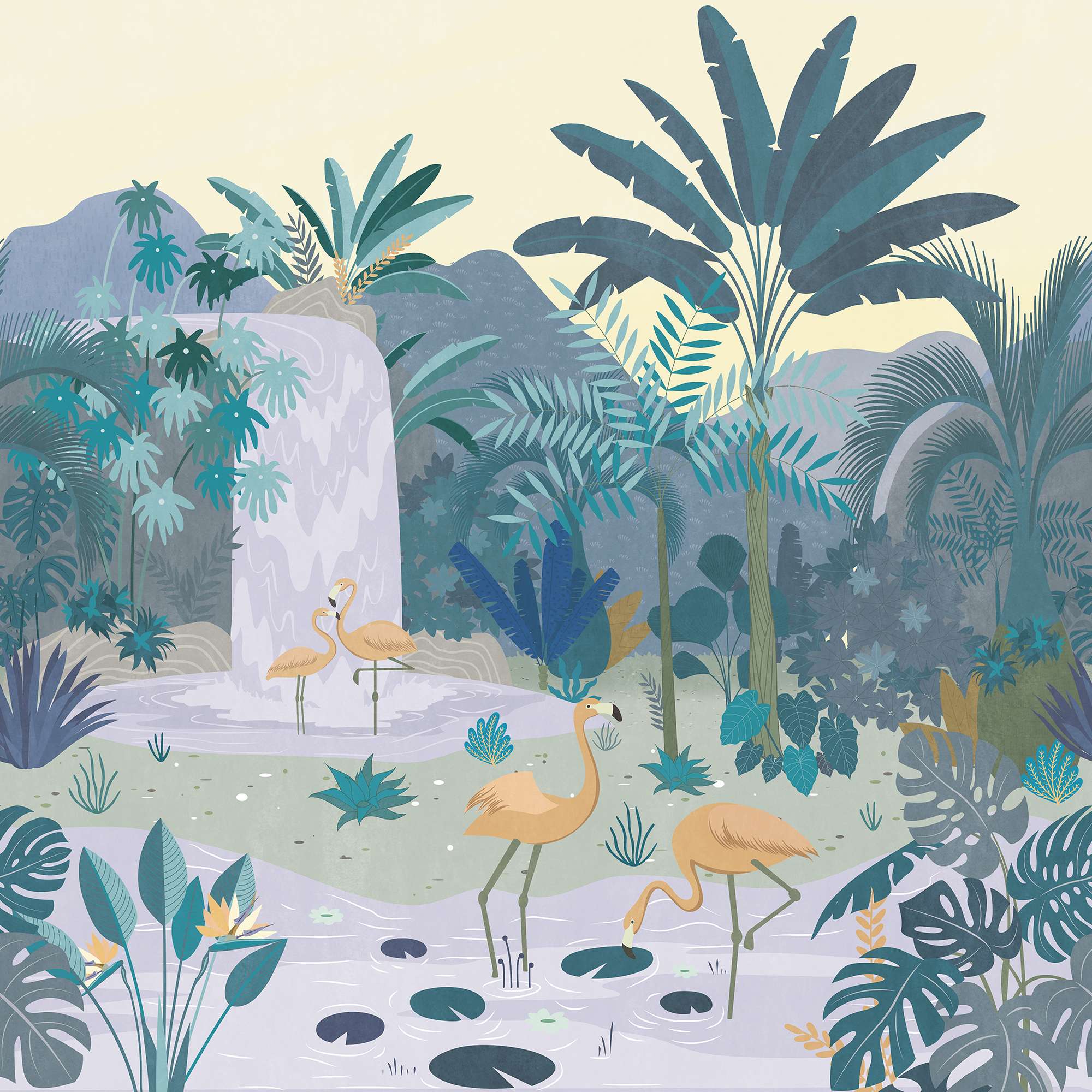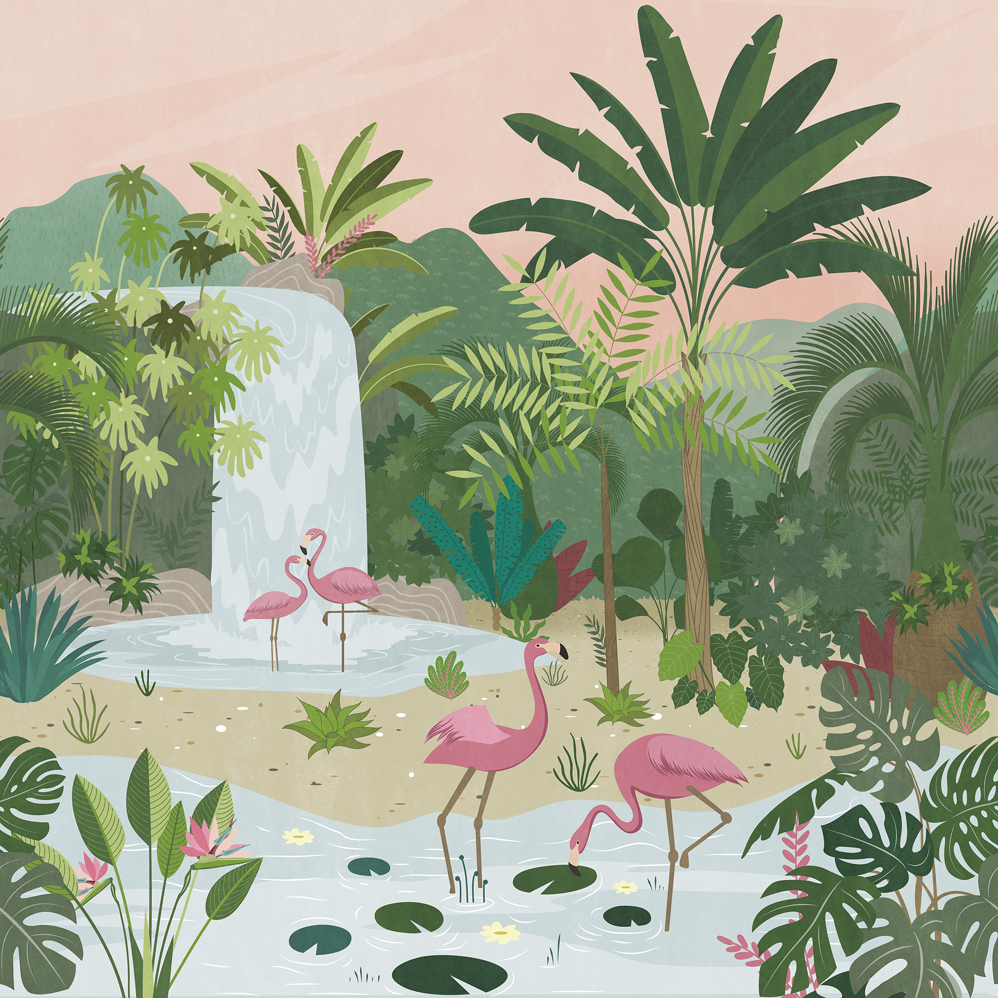 Фламинго у водопада