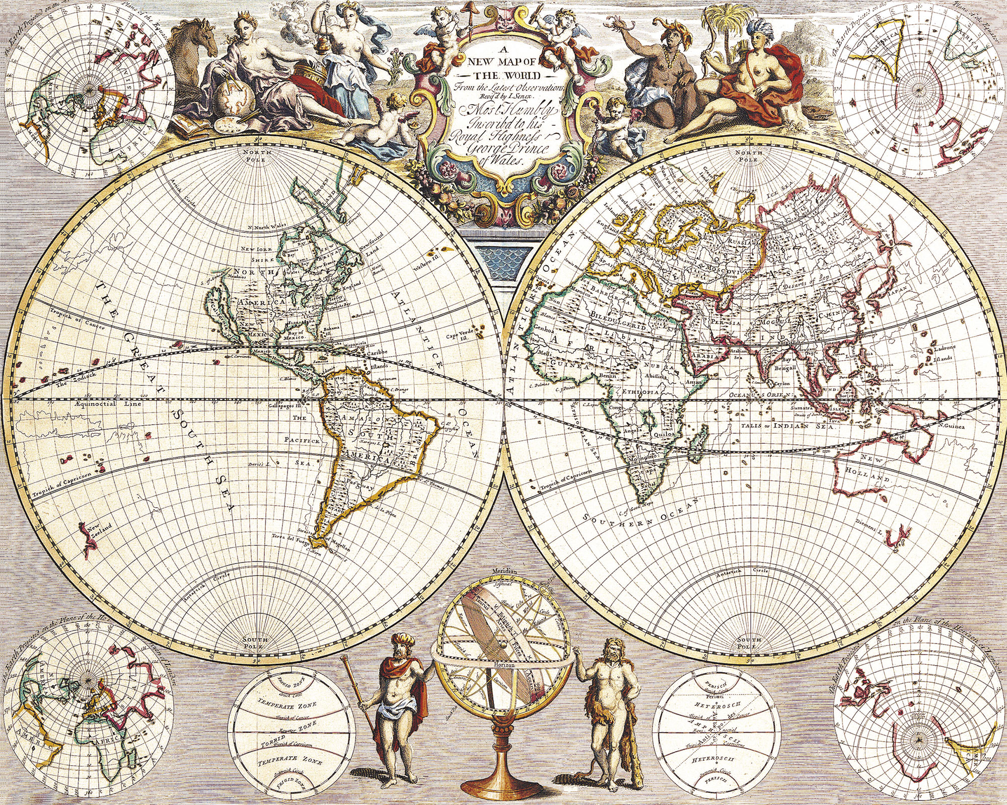 Карта мира с полушариями